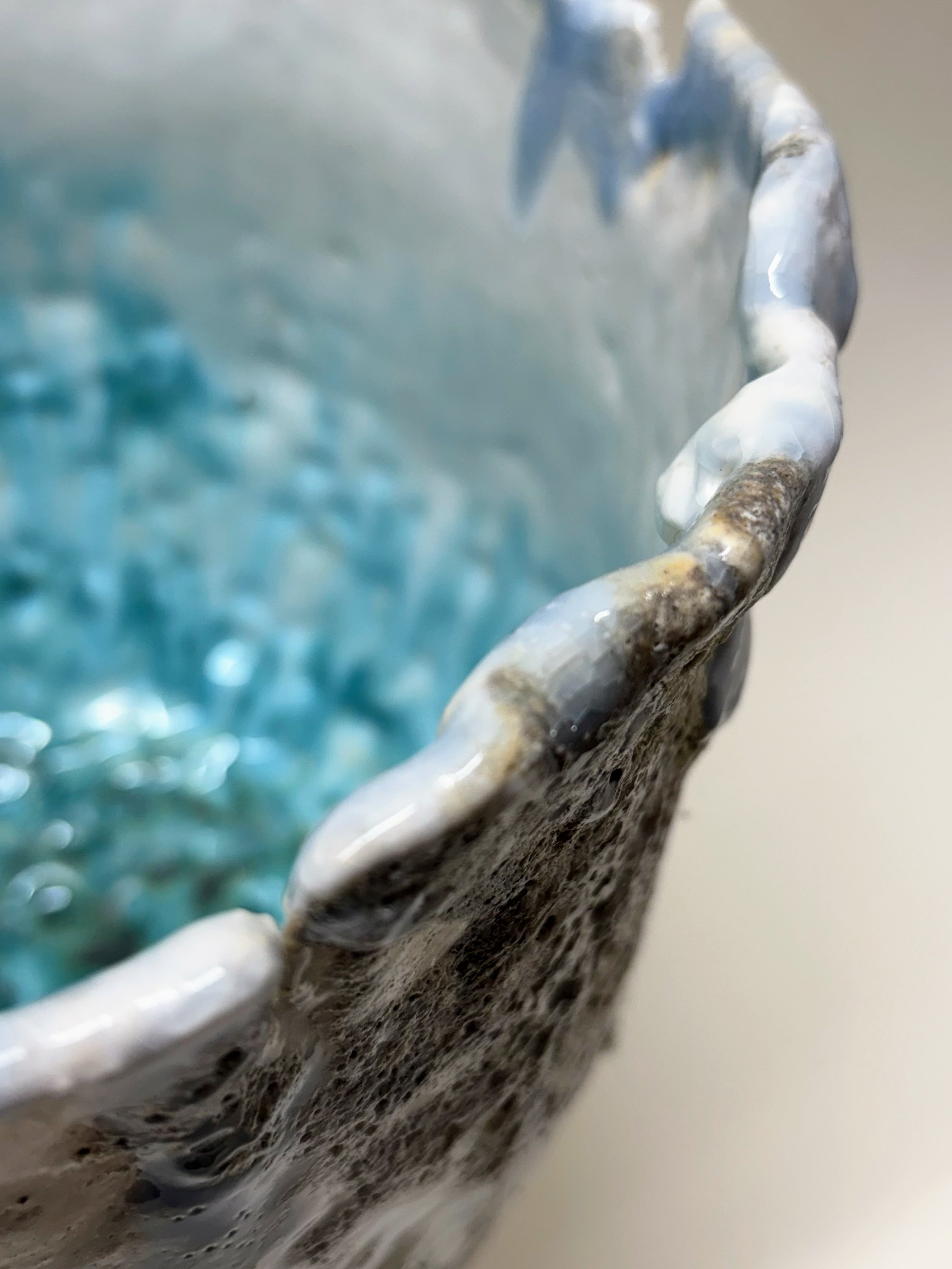 Materials: Stoneware clay, porcelain, glazes, oxides and glass.